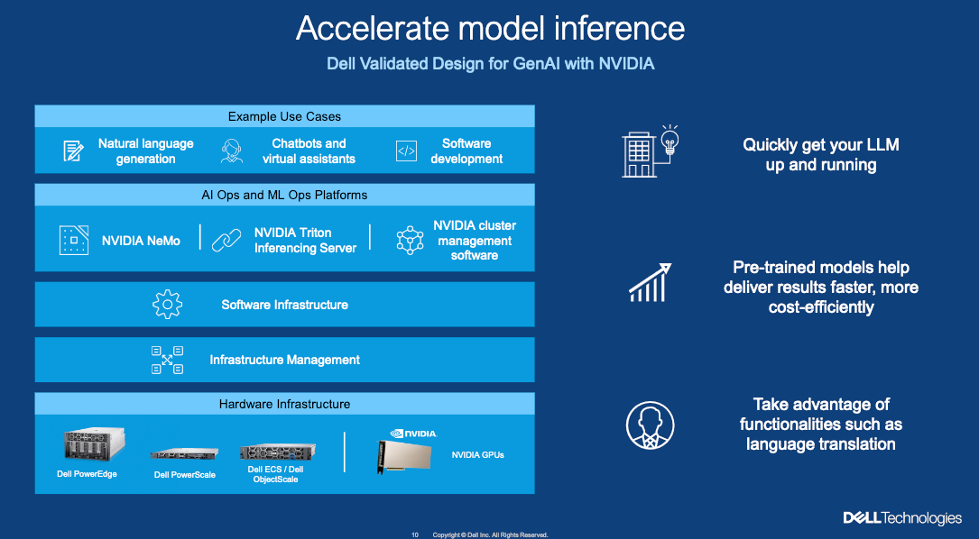 TLDR: Dell is fully embracing the generative AI trend by offering comprehensive solutions to support organizations in harnessing large language models and developing generative AI projects.