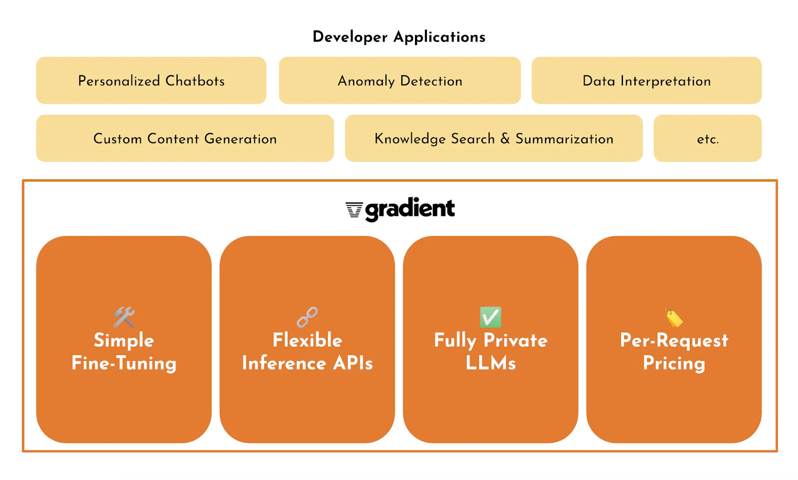 4. Gradient takes the headache out of developing custom Language Learning Models. With one API call, you can fine-tune open-source LLMs like Llama 2 while keeping your data on a tight leash.
